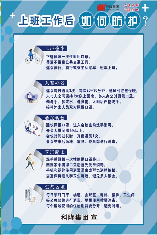 新冠肺炎疫情發(fā)生以來(lái),國(guó)內(nèi)企業(yè)生產(chǎn)經(jīng)營(yíng)發(fā)展受到較大影響,面臨形勢(shì)相當(dāng)嚴(yán)峻。2月8日,國(guó)務(wù)院聯(lián)防聯(lián)控機(jī)制印發(fā)通知,對(duì)切實(shí)加強(qiáng)疫情科學(xué)防控、有序做好企業(yè)復(fù)工復(fù)產(chǎn)工作作出安排部署。為確保科隆集團(tuán)生產(chǎn)經(jīng)營(yíng)和疫情防控工作兩不誤,集團(tuán)各單位快速反應(yīng)、馬上行動(dòng),成立“疫情防控復(fù)工小組”,展開(kāi)復(fù)工和疫情防控專題工作計(jì)劃,努力推動(dòng)企業(yè)恢復(fù)正常生產(chǎn)經(jīng)營(yíng),為社會(huì)經(jīng)濟(jì)發(fā)展提供支撐、做好保障。